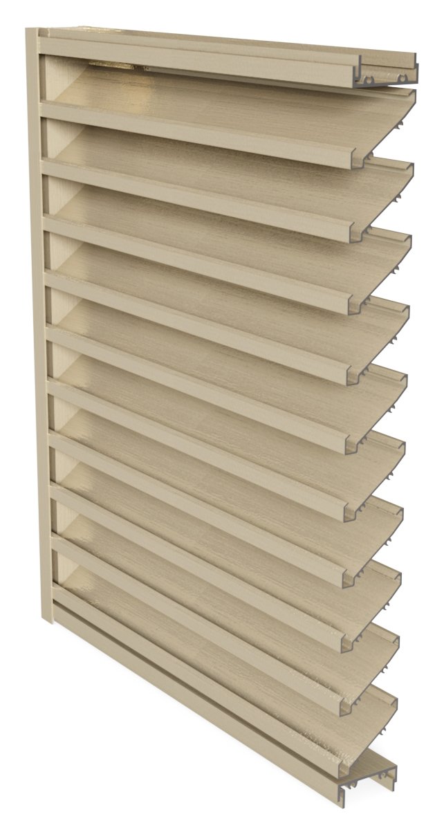2″ High Performance Drainable; extruded aluminum construction; frame with channel profile; corner joints mitered and mechanically fastened, with continuous recessed caulking channel each side; intermediate mullions matching frame; gutters; rated for an air performance and water penetration maintained effectiveness rate tested in accordance with AMCA 500-L.