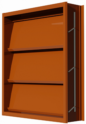 6″ OSA Rain high performance series; extruded aluminum construction; frame with channel profile; corner joints mitered and mechanically fastened, with continuous recessed caulking channel each side; intermediate mullions matching frame; gutters; rated for an air performance and water penetration maintained effectiveness rate tested in accordance with AMCA 500-L.
